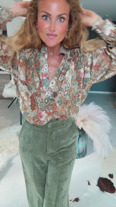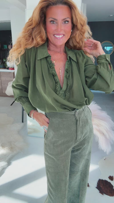 Pantalon trompette, confortable, finitions éfiloché dans le bas.